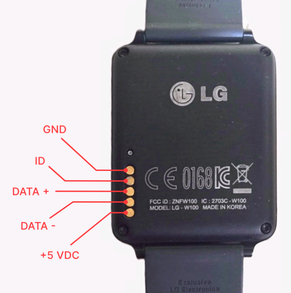 - what: pinout for LG G Watch (and therefore also its charging base)